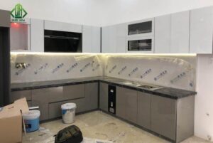 • Khung nhôm: Khung cửa tủ được làm từ nhôm cao cấp, có khả năng chống ăn mòn, không gỉ sét, và chịu được va đập mạnh. Khung nhôm mang lại sự bền bỉ, giúp tủ bếp chịu được điều kiện môi trường khắc nghiệt, đặc biệt là ở những khu vực có độ ẩm cao như nhà bếp.