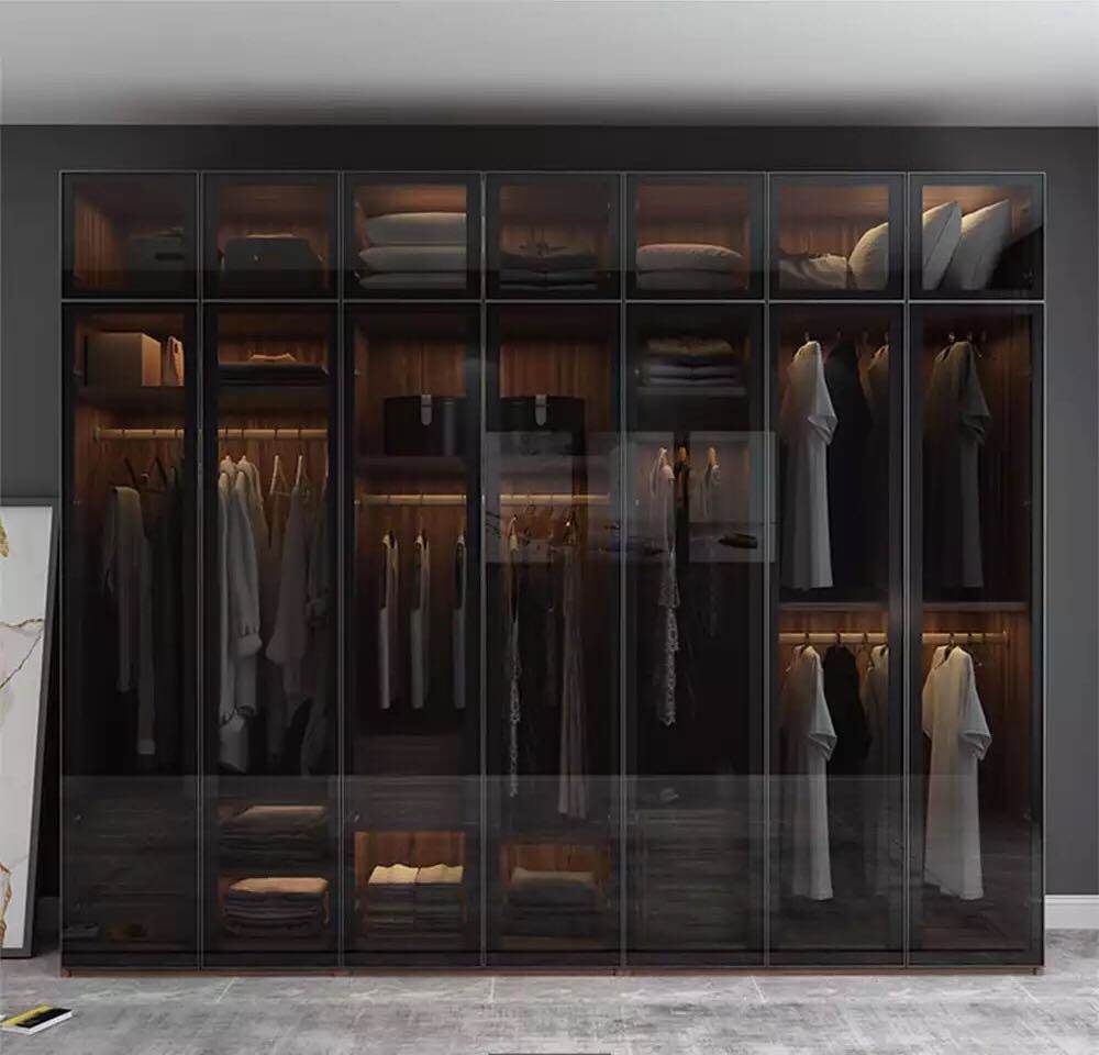 Tủ áo cánh kính, với cánh cửa làm từ kính trong suốt hoặc kính mờ, là lựa chọn lý tưởng để lưu trữ chén đĩa, gia vị và các vật dụng khác trong nhà bếp. Thiết kế hiện đại của tủ cánh kính quần áo không chỉ tạo sự sang trọng mà còn giúp người dùng dễ dàng quan sát và lấy đồ mà không cần mở tủ.